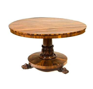 A fine & rare George IV gonçalo alves tilt-top breakfast table, or 'loo table' in the manner of Gillows